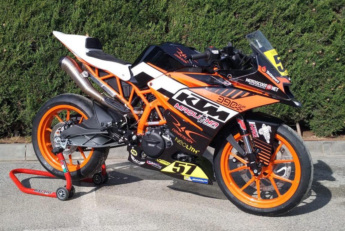 Totimport suministra parte de las piezas y componentes que componen el kit de competición para la KTM RC390 con marcas de primer nivel como Bonamici Racing, HmQuickshifter o Zeta.